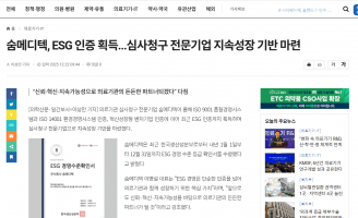 숨메디텍, ESG 인증 획득...심사청구 전문기업 지속성장 기반 마련